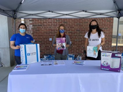 Providing the ‘swag’ as well as a volunteer on hand to distribute the bags to families, TUFTS Health Plan was critical in the work of the Little Necessities Pantry as well as this week’s events. Shauna Vera, Supervisor of Community Relations, reiterated the need: “Tufts Health Plan is committed to supporting local organizations, like the YMCA, improve access to basic necessities like food, toiletries, diapers, and other baby essentials. We are proud to collaborate with an organization doing such important work in the community, especially during times of need, to get families the essential items that many take for granted.”